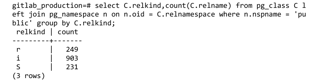 用标准PostgreSQL部署的GitLab包含的数据库schema为: