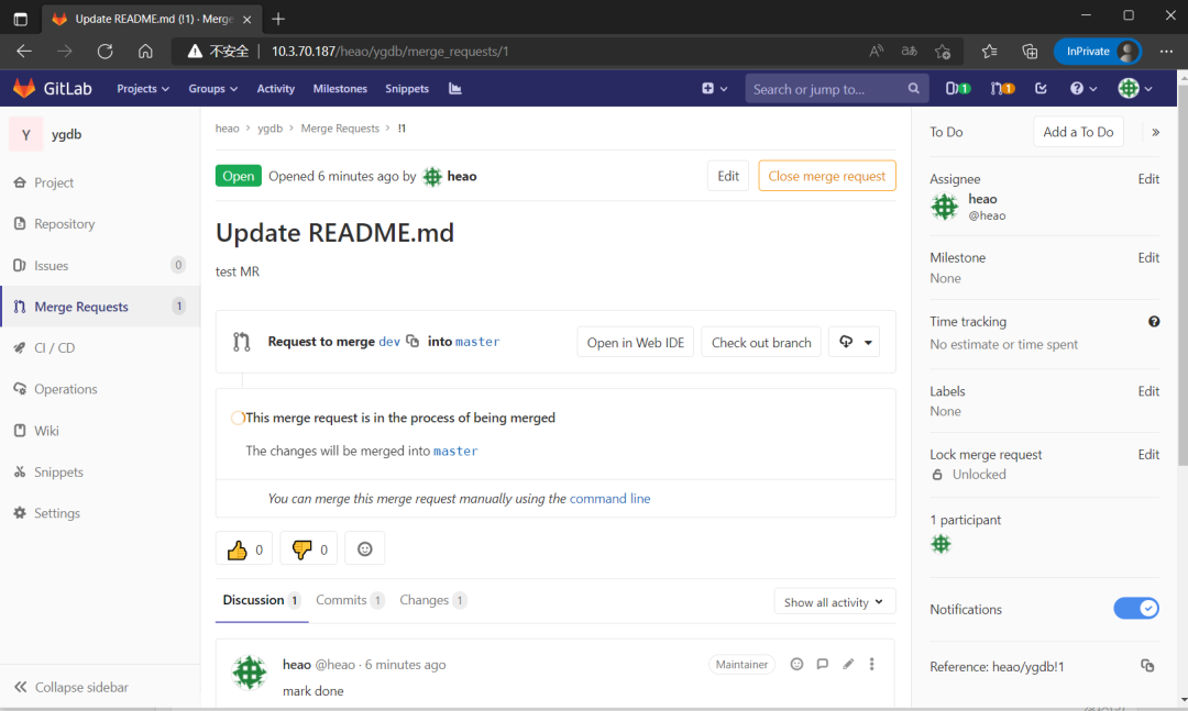 场景名称:Create Merge Request